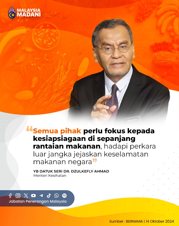 SEMUA PIHAK PERLU FOKUS KEPADA KESIAPSIGAAN DI SEPANJANG RANTAIAN MAKANAN, HADAPI PERKARA LUAR JANGKA JEJASKAN KESELAMATAN MAKANAN NEGARA