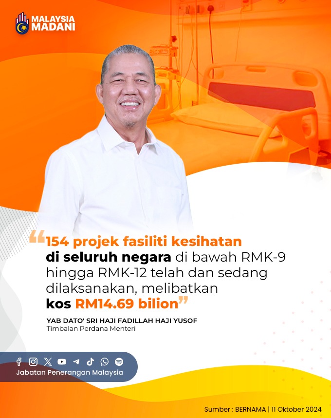 154 PROJEK FASILITI KESIHATAN DI SELURUH NEGARA DI BAWAH RMK-9 HINGGA RMK-12 TELAH DAN SEDANG DILAKSANAKAN, MELIBATKAN KOS RM14.69 BILION