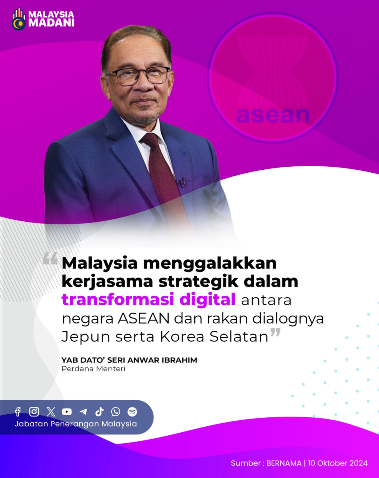 MALAYSIA GALAKAN KERJASAMA STRATEGIK DALAM TRANSFORMASI DIGITAL ANTARA NEGARA ASEAN DAN RAKAN DIALOGNYA JEPUN SERTA KOREA SELATAN