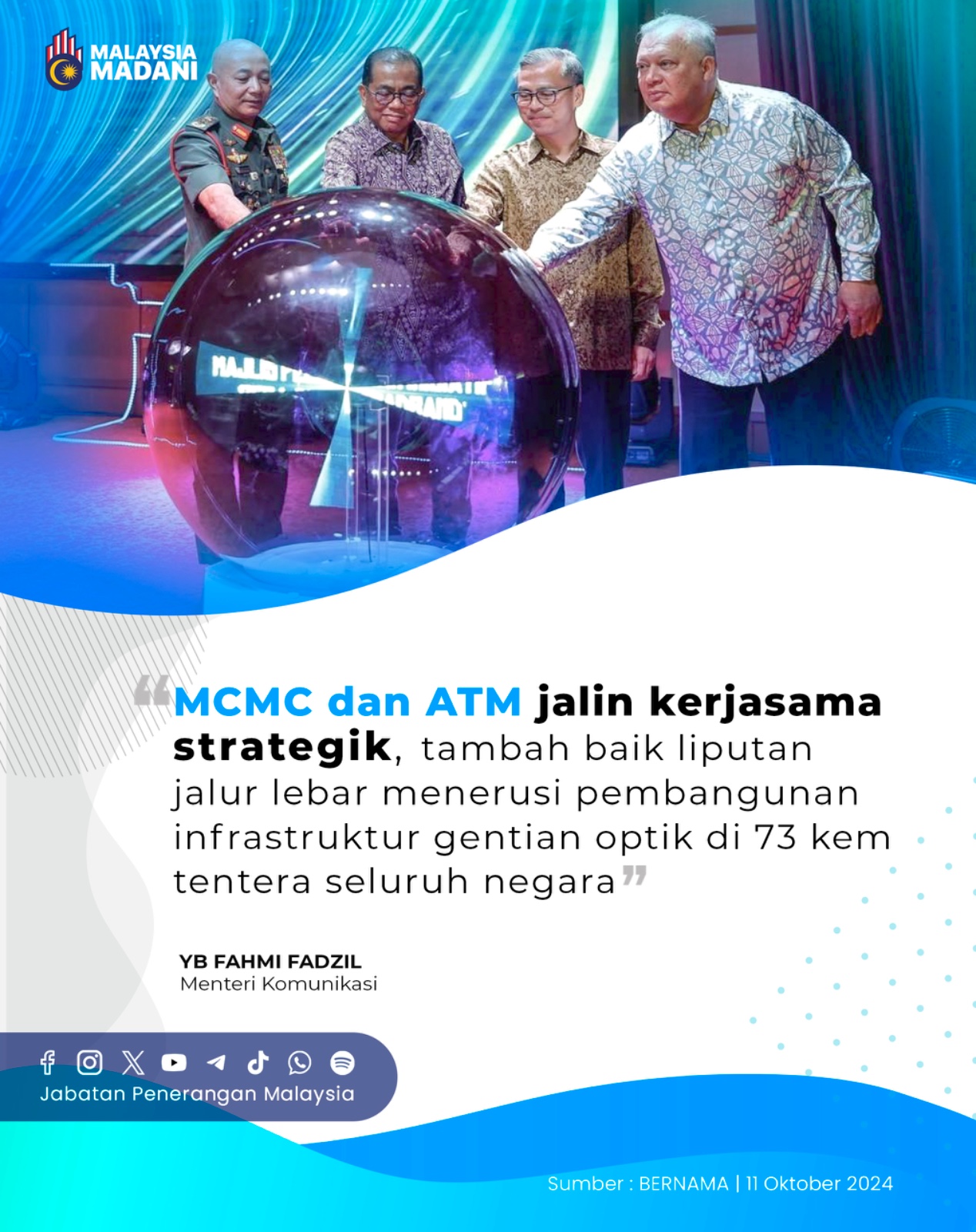 MCMC DAN ATM JALIN KERJASAMA STRATEGIK, TAMBAH BAIK LIPUTAN JALUR LEBAR MENERUSI PEMBANGUNAN INFRASTRUKTUR GENTIAN OPTIK DI 73 KEM TENTERA SELURUH NEGARA