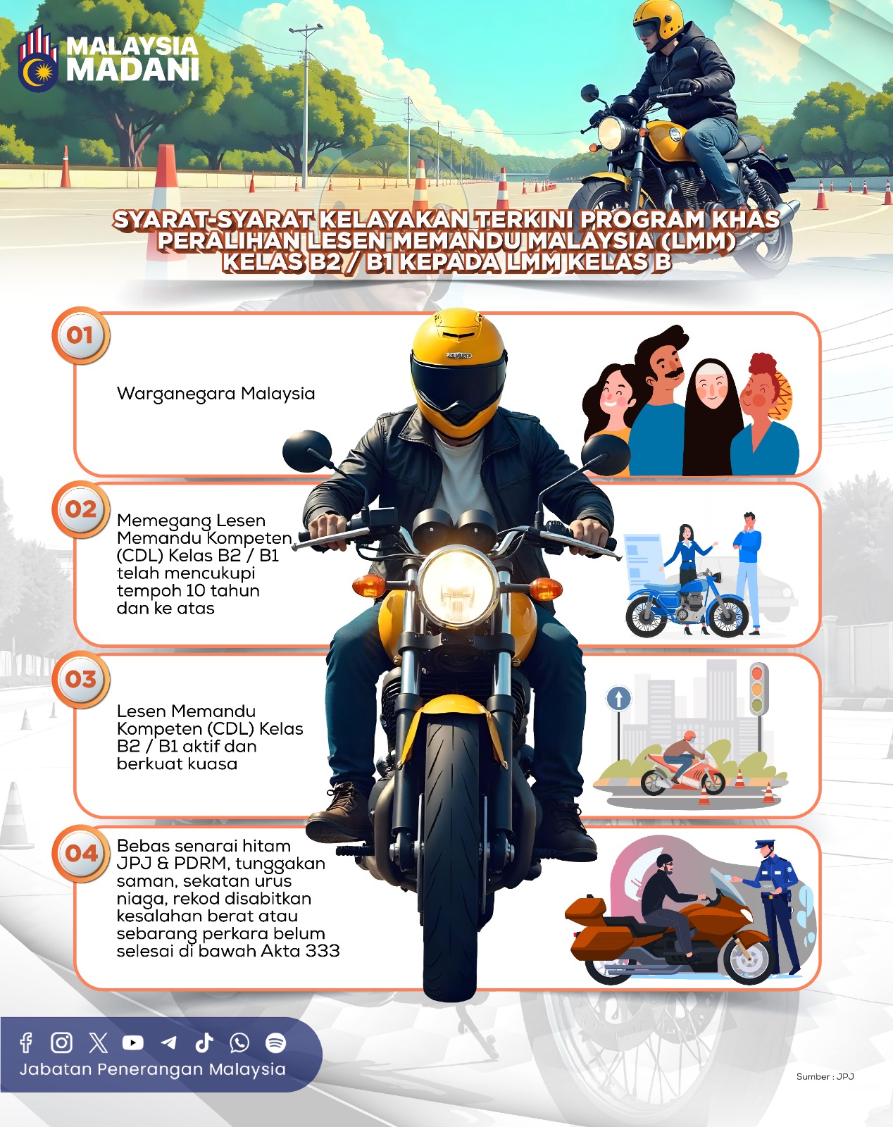 SYARAT-SYARAT KELAYAKAN TERKINI PROGRAM KHAS PERALIHAN LESEN MEMANDU MALAYSIA (LMM) KELAS B2/ B1 KEPADA LMM KELAS B