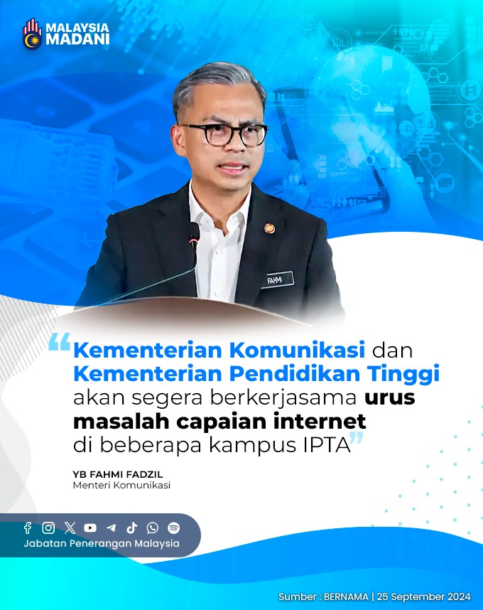 KEMENTERIAN KOMUNIKASI DAN KEMENTERIAN PENDIDIKAN TINGGI AKAN SEGERA BERKERJASAMA URUS MASALAH CAPAIAN INTERNET DI BEBARAPA KAMPUS IPTA
