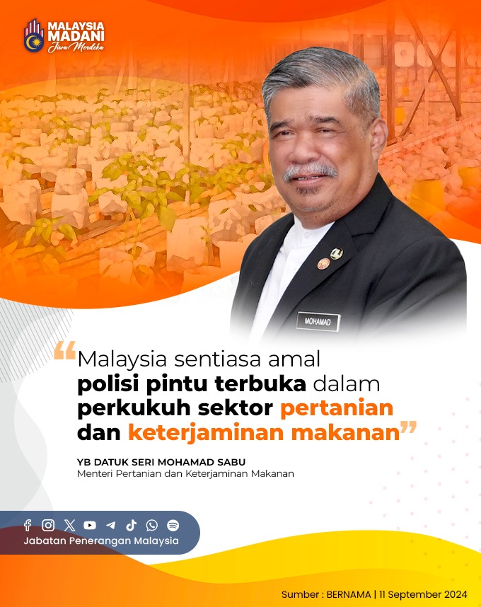 MALAYSIA SENTIASA AMAL POLISI PINTU TERBUKA DALAM PERKUKUH SEKTOR PERTANIAN DAN KETERJAMINAN MAKANAN