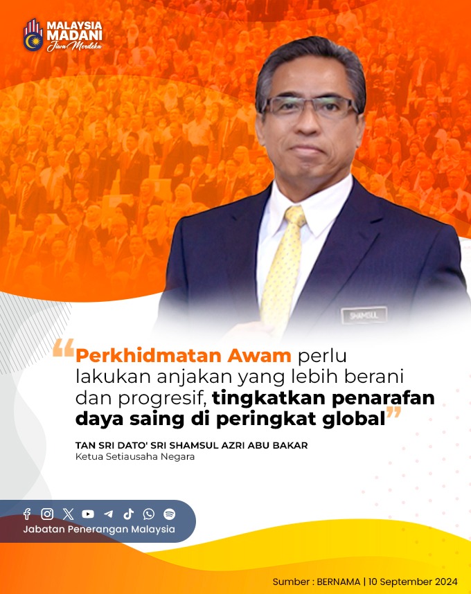 PERKHIDMATAN AWAM PERLU LAKUKAN ANJAKAN YANG LEBIH BERANI DAN PROGRESIF, TINGKATKAN PENARAFAN DAYA SAING DI PERINGKAT GLOBAL