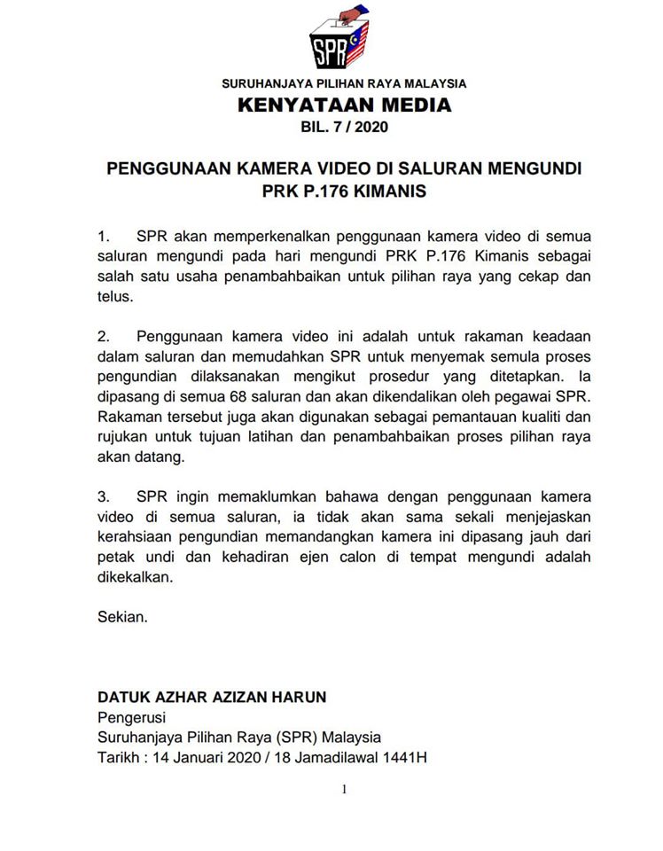 [KENYATAAN MEDIA ] PENGGUNAAN KAMERA VIDEO DI SALURAN MENGUNDI PRK P.176 KIMANIS