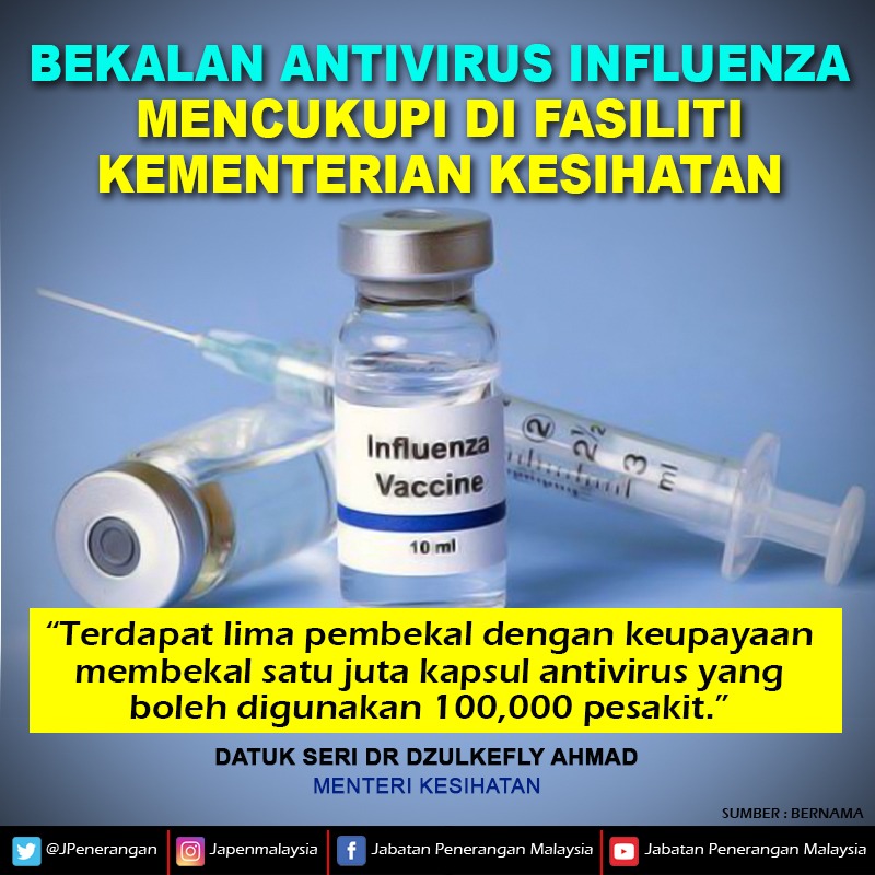 BEKALAN ANTIVIRUS INFLUENZA MENCUKUPI DI FASILITI KEMENTERIAN KESIHATAN