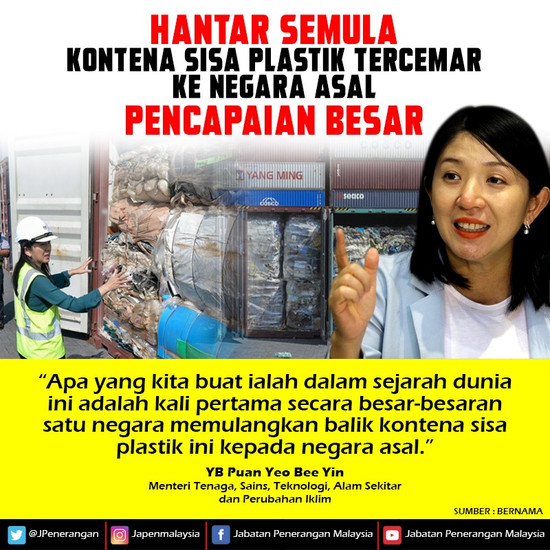 HANTAR SEMULA KONTENA SISA PLASTIK TERCEMAR KE NEGARA ASAL PENCAPAIAN BESAR