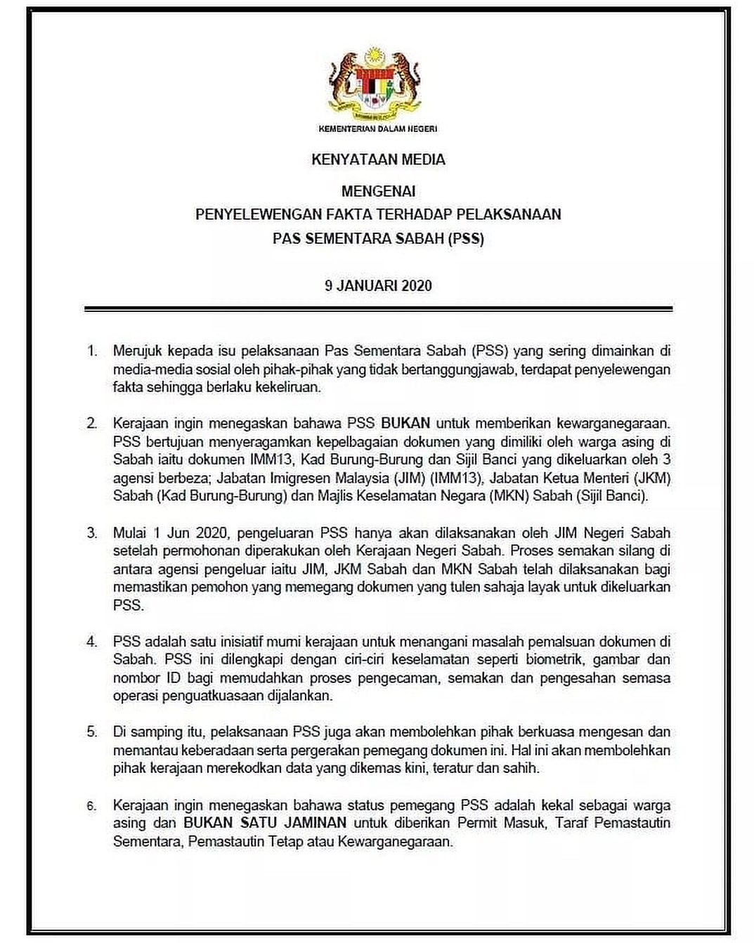 KENYATAAN MEDIA MENGENAI PENYELEWENGAN FAKTA TERHADAP PELAKSANAAN PAS SEMENTARA SABAH (PSS)⠀