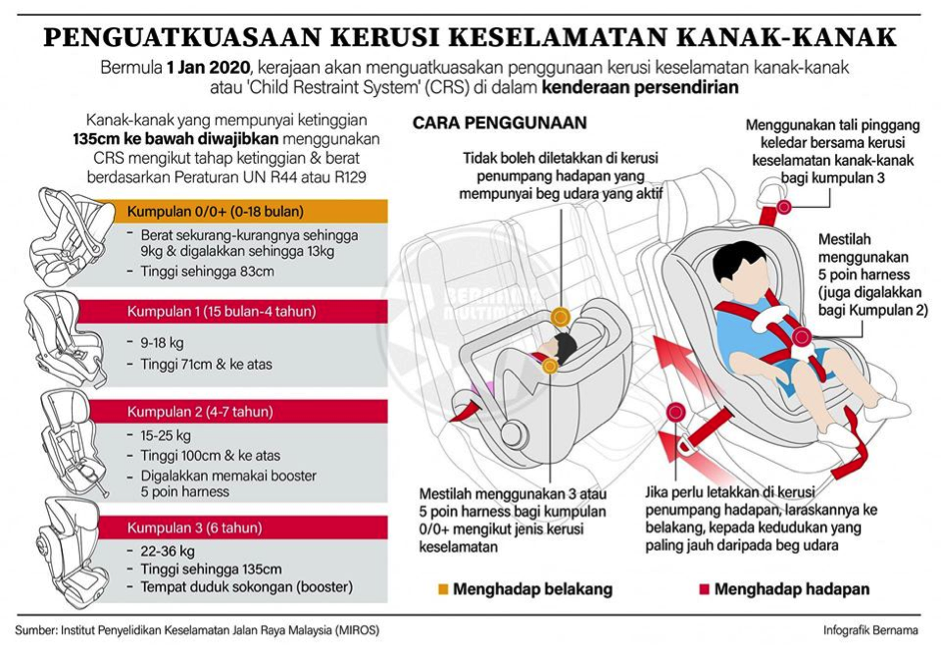 PENGUATKUASAAN KERUSI KESELAMATAN KANAK-KANAK BERMULA HARI INI, 1 JANUARI 2020