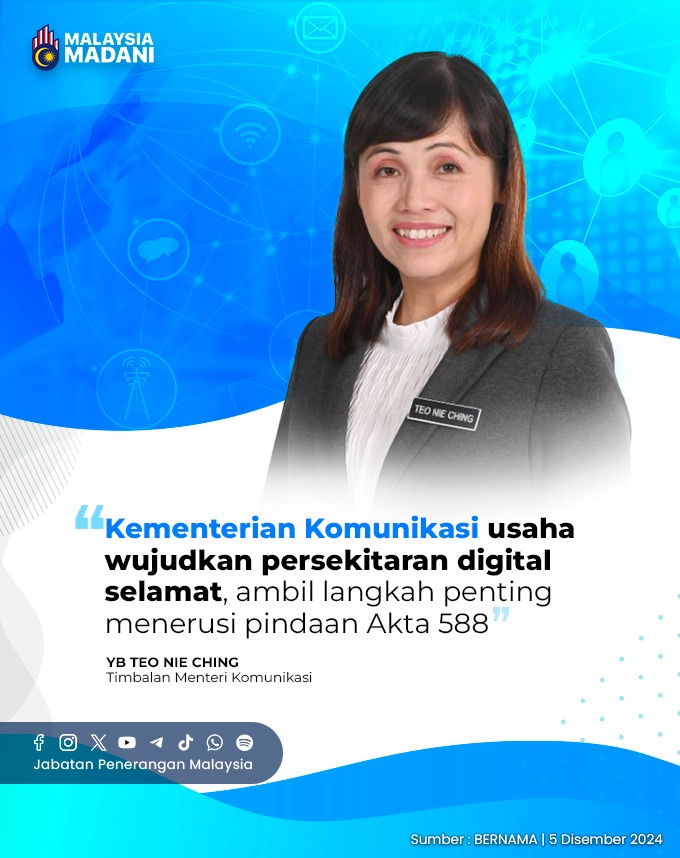 KEMENTERIAN KOMUNIKASI USAHA WUJUDKAN PERSEKITARAN DIGITAL SELAMAT, AMBIL LANGKAH PENTING MENERUSI PINDAAN AKTA 588