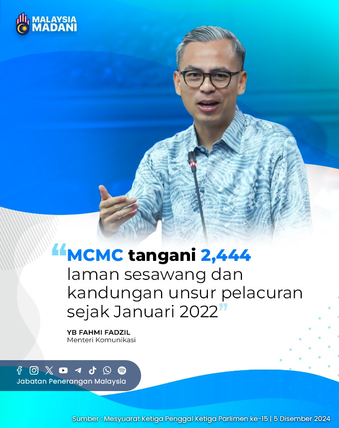 MCMC TANGANI 2,444 LAMAN SESAWANG KANDUNGAN UNSUR PELACURAN SEJAK JANUARI 2022