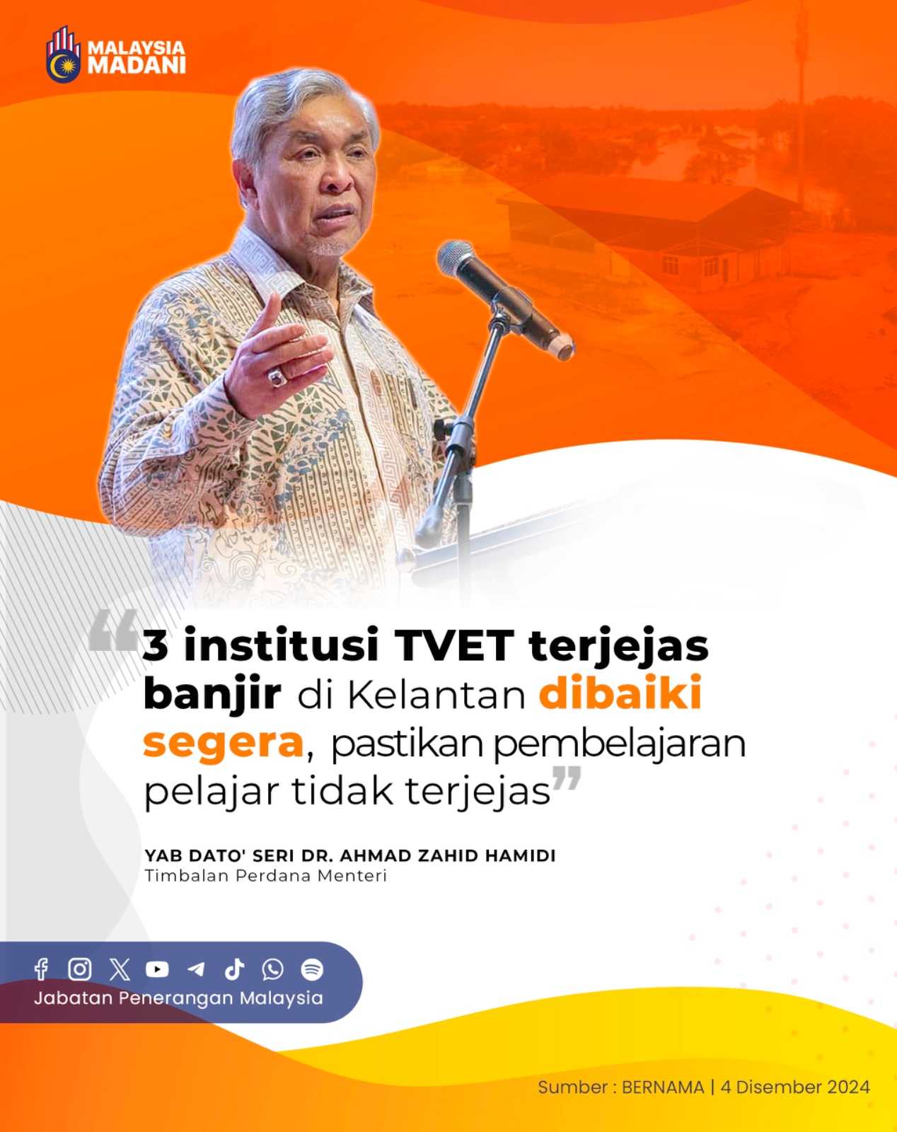 3 INSTITUSI TVET TERJEJAS BANJIR DI KELANTAN DIBAIKI SEGERA, PASTIKAN PEMBELAJARAN PELAJAR TIDAK TERJEJAS