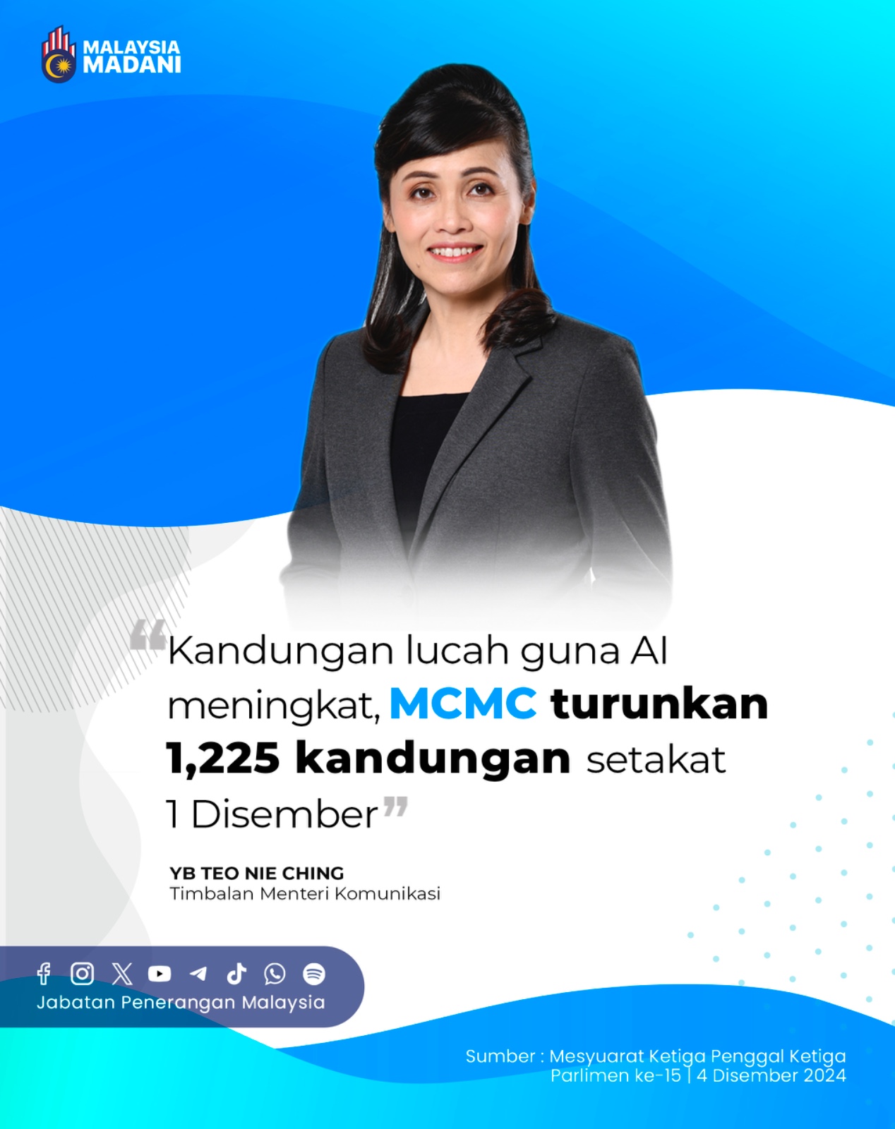 KANDUNGAN LUCAH GUNA AI MENINGKAT, MCMC TURUNKAN 1,225 KANDUNGAN SETAKAT 1 DISEMBER