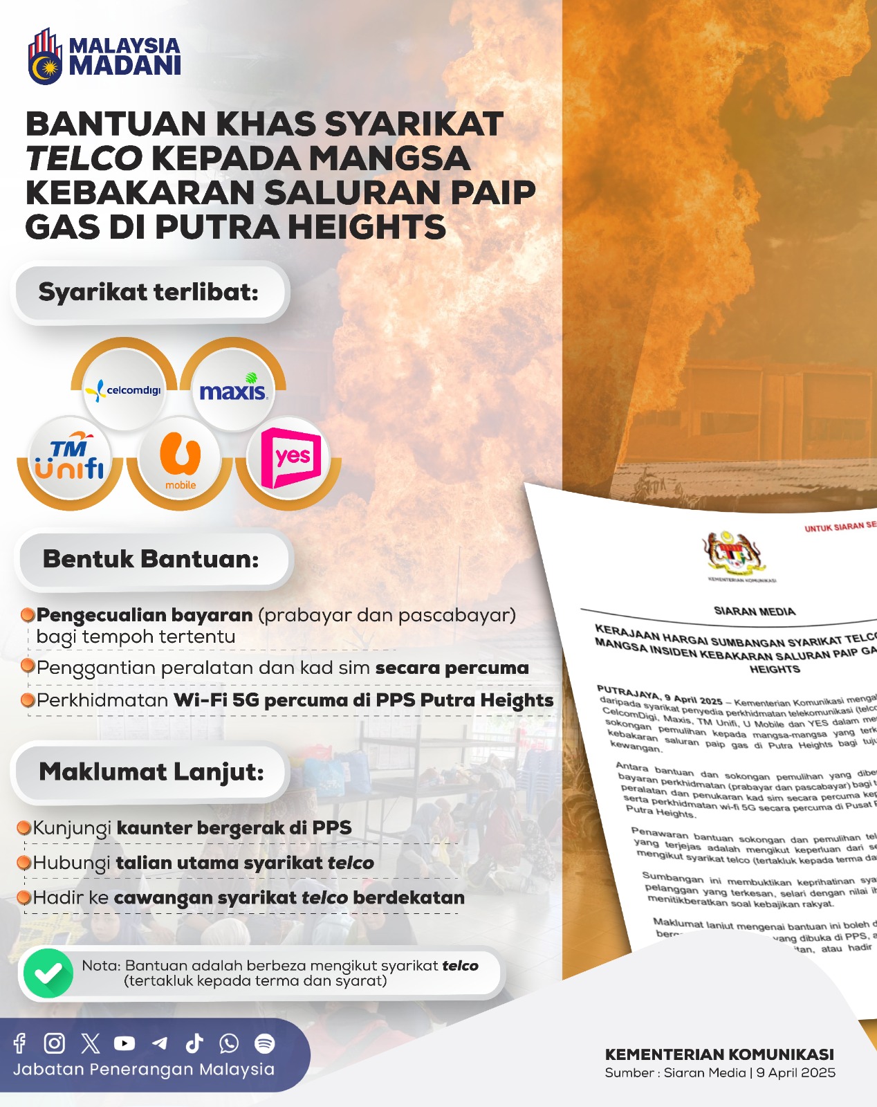 BANTUAN KHAS SYARIKAT TELCO KEPADA MANGSA KEBAKARAN SALURAN PAIP GAS DI PUTRA HEIGHTS