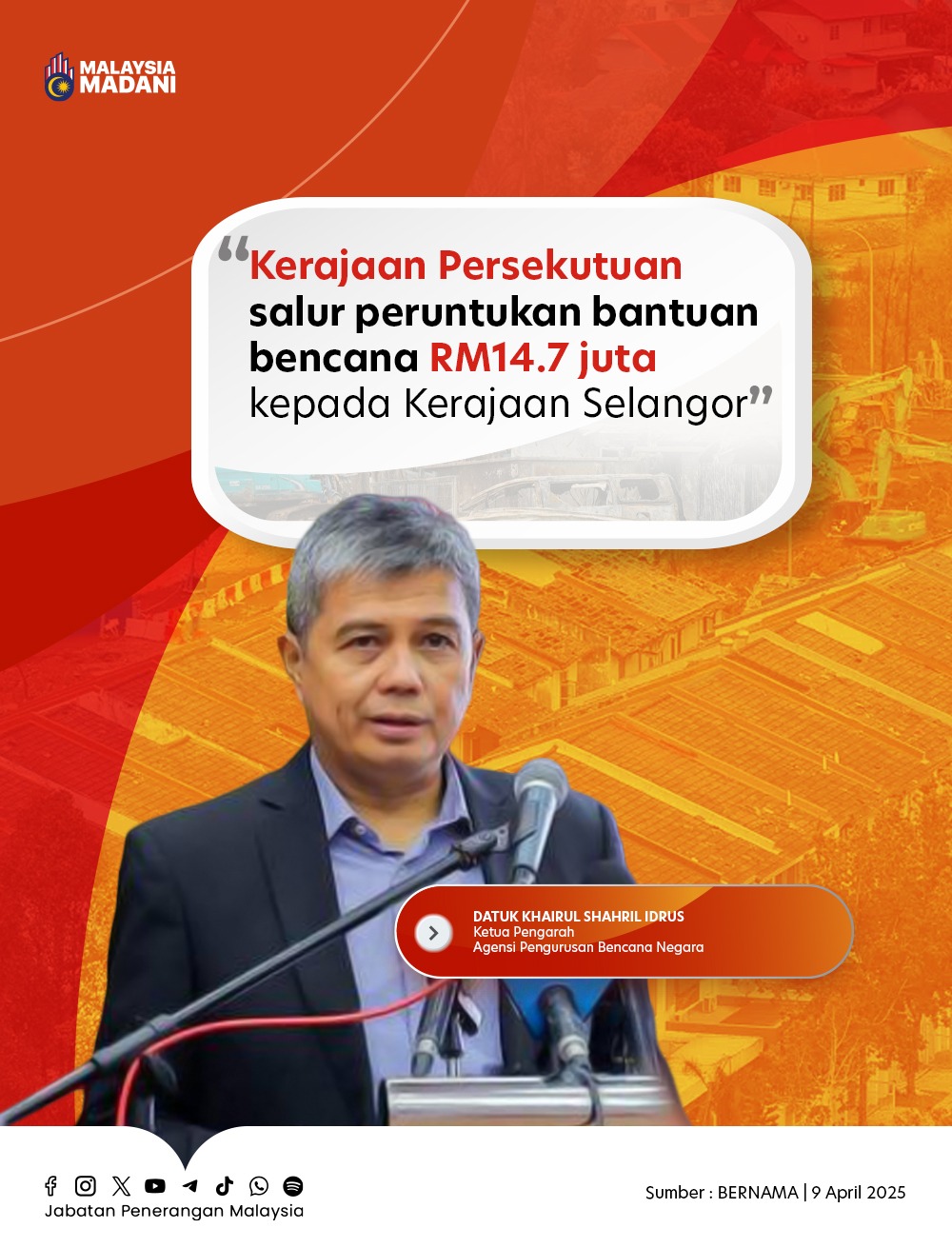 KERAJAAN PERSEKUTUAN SALUR PERUNTUKAN SALUR BANTUAN BENCANA RM14.7 JUTA KEPADA KERAJAAN SELANGOR