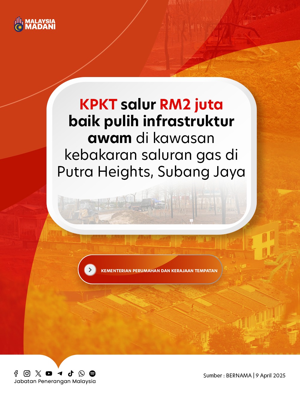 KPKT SALUR RM2 JUTA BAIK PULIH INFRASTRUKTUR AWAM DI KAWASAN SALURAN GAS DI PUTRA HEIGHT, SUBANG JAYA