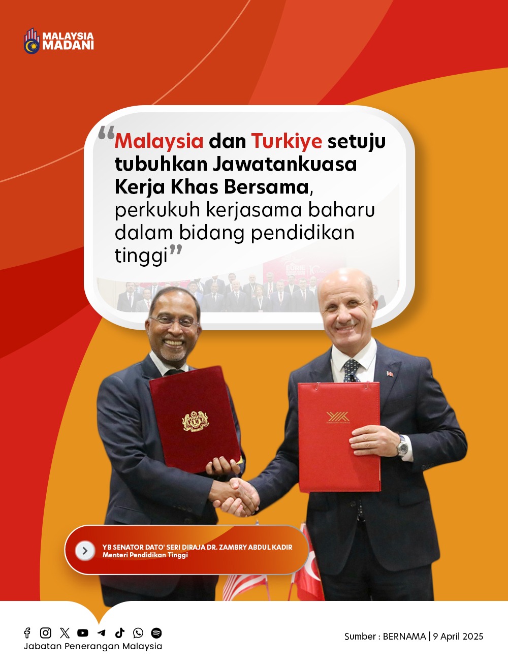 MALAYSIA DAN TURKIYE SETUJU TUBUHKAN JAWATANKUASA KERJA KHAS BERSAMA, PERKUKUH KERJSAMA BAHARU DALAM BIDANG PENDIDIKAN TINGGI