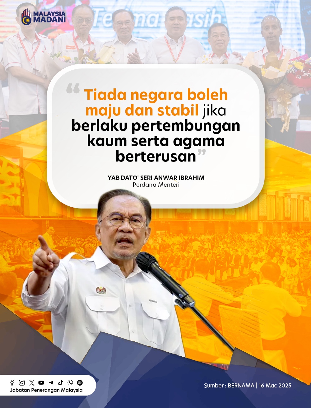 TIADA NEGARA BOLEH MAJU DAN STABIL JIKA BERLAKU PERTEMBUNGAN KAUM SERTA AGAMA BERTERUSAN
