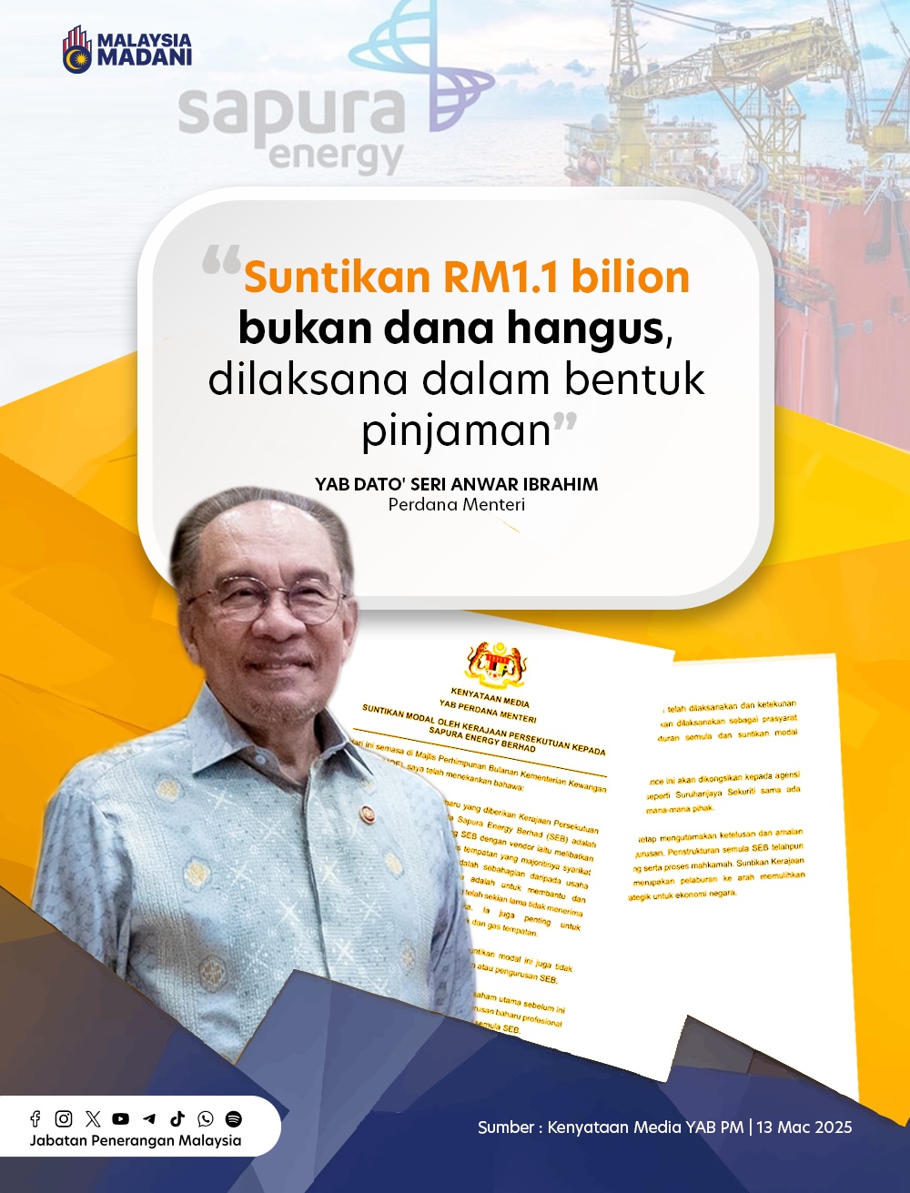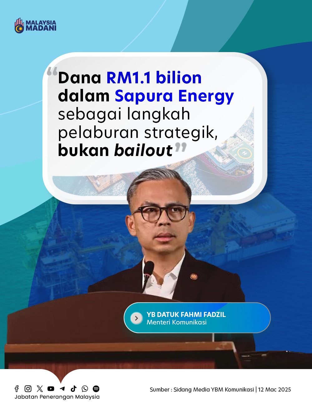 DANA RM1.1 BILION DALAM SAPURA ENERGY SEBAGAI LANGKAH PELABURAN STRATEGIK, BUKAN BAILOUT