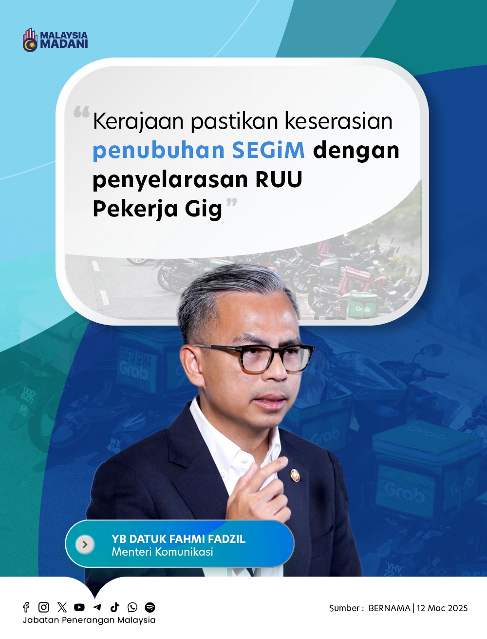 KERAJAAN PASTIKAN KESERASIAN PENUBUHAN SEGIM DENGAN PENYELARASAN RUU PEKERJA GIG