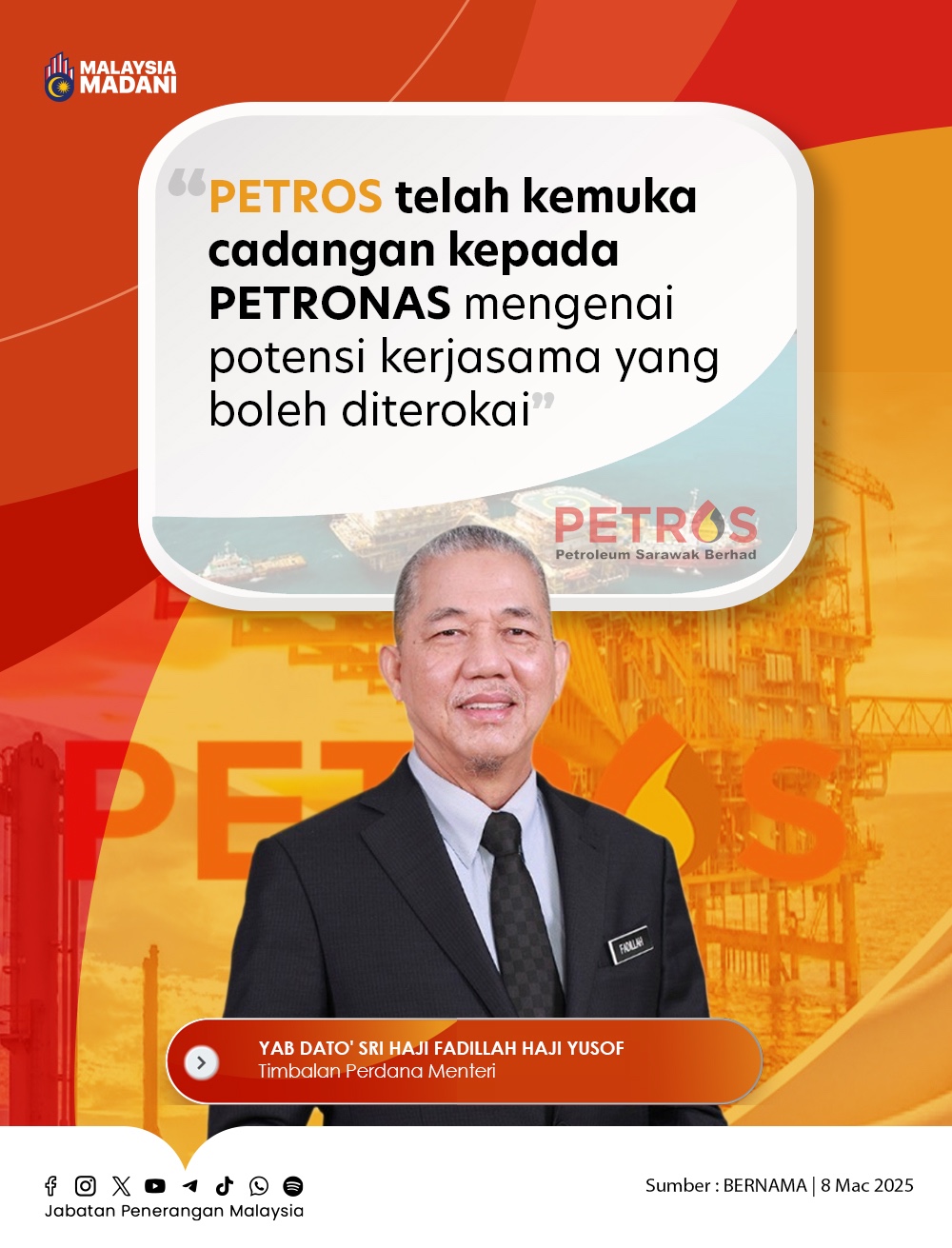 PETROS TELAH KEMUKA CADANGAN KEPADA PETRONAS MENGENAI POTENSI KERJASAMA YANG BOLEH DITEROKAI