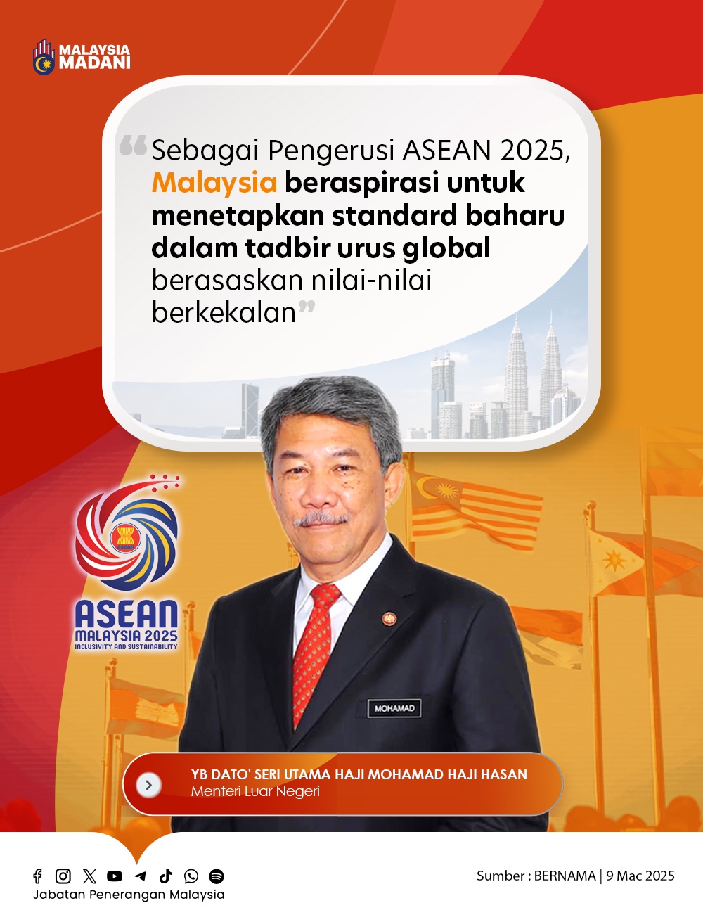SEBAGAI PENGERUSI ASEAN 2025, MALAYSIA BERASPIRASI UNTUK MENETAPKAN STANDARS BAHARU DALAM TADBIR URUS GLOBAL BERASASKAN NILAI-NILAI BERKEKALAN