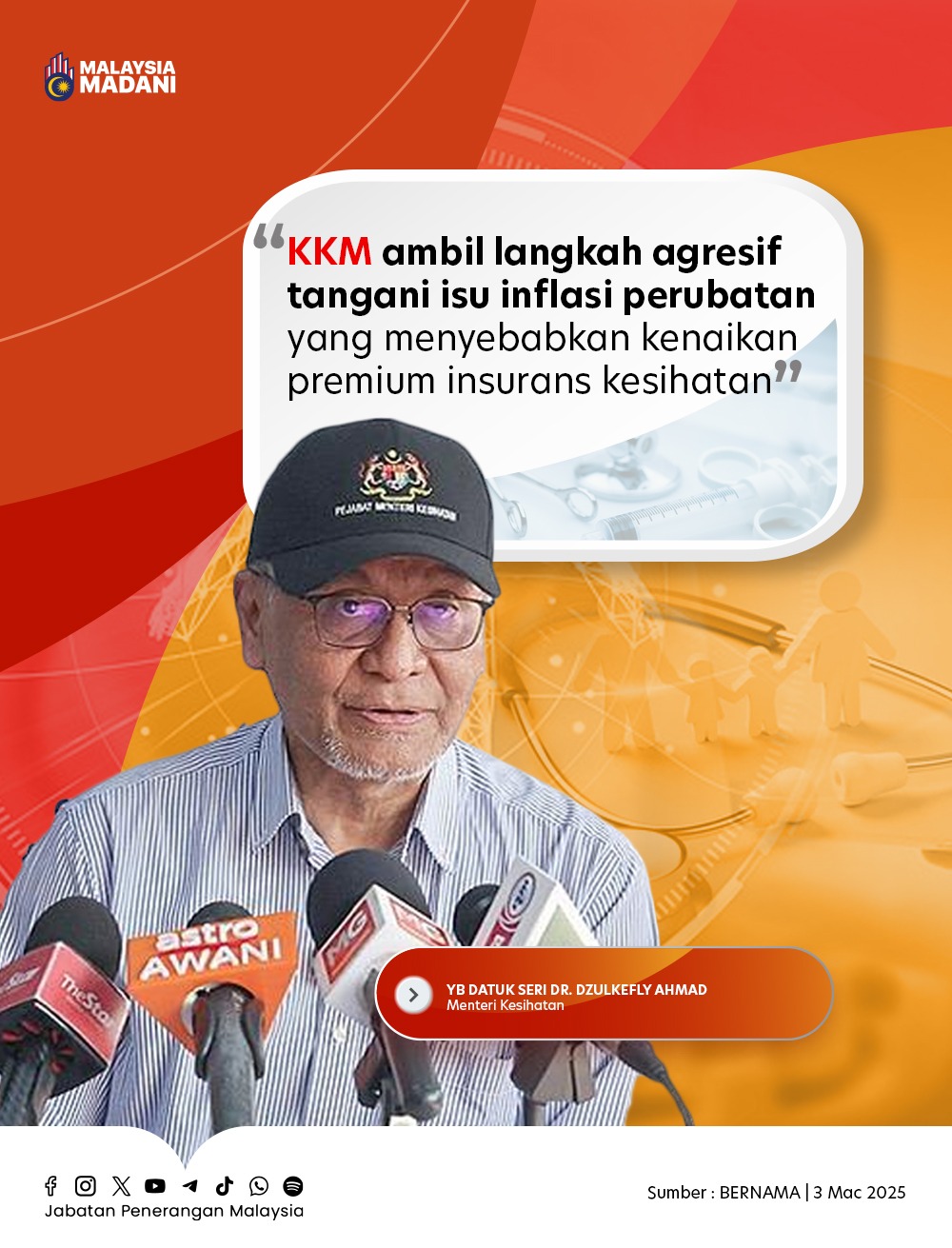 KKM AMBIL LANGKAH AGRESIF TANGANI ISU INFLASI PERUBATAN YANG MENYEBABKAN KENAIKAN PREMIUM INSURAN KESIHATAN