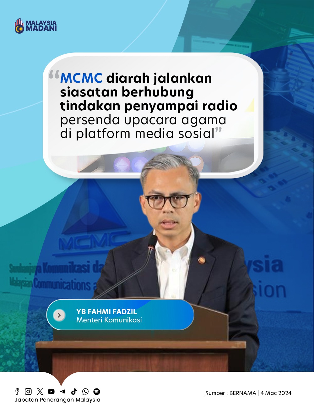 MCMC DIARAH JALANKAN SIASATAN BERHUBUNG TINDAKAN PENYAMPAI RADIO PERSENDA UPACARA DI PLATFORM MEDIA SOSIAL