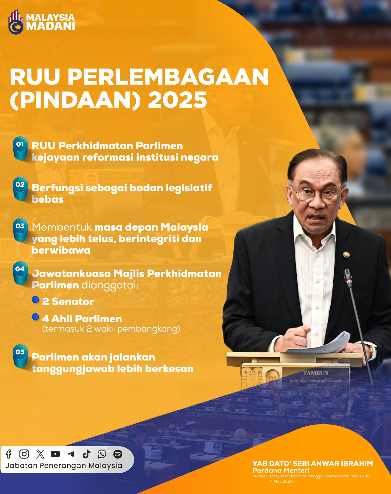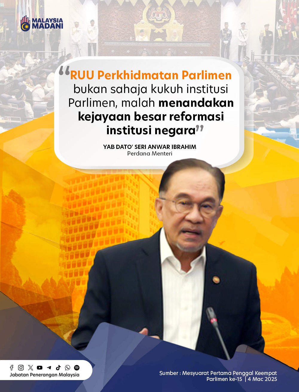 RUU PERKHIDMATAN PARLIMEN BUKAN SAHAJA KUKUH INSTITUSI PARLIMEN, MALAH MENANDAKAN KEJAYAAN BESAR REFORMASI INSTITUSI NEGARA