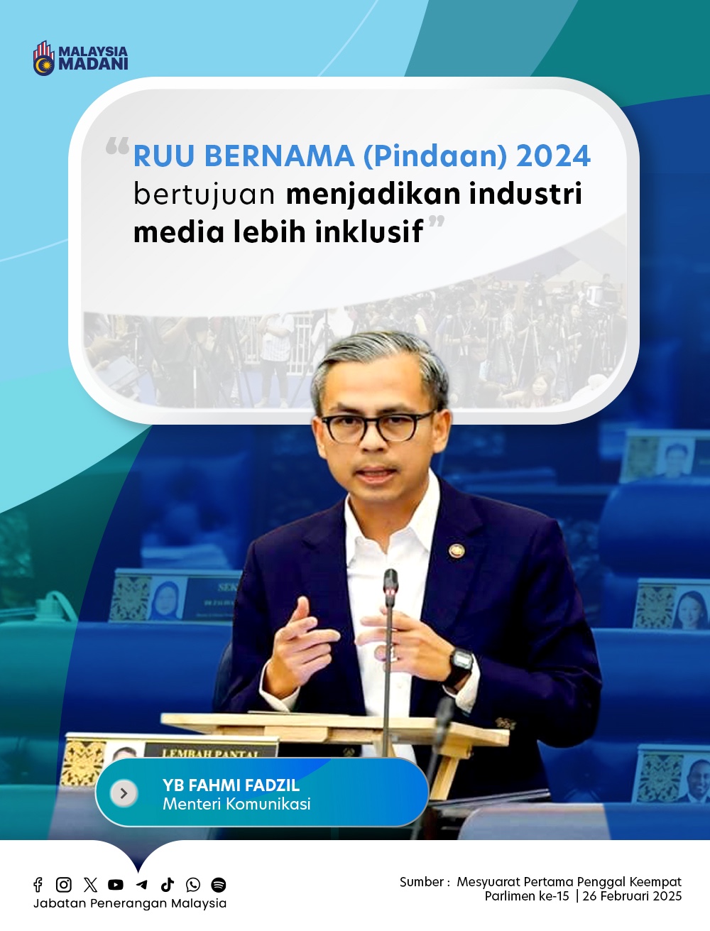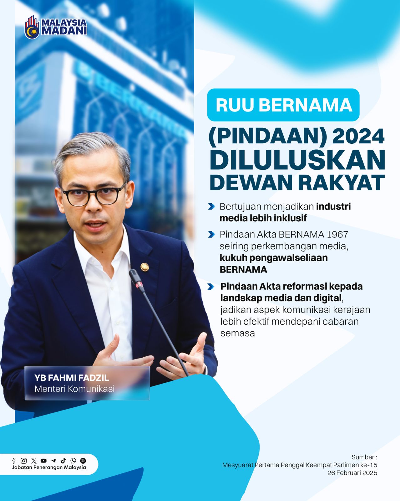 RUU BERNAMA (PINDAAN) 2024 BERTUJUAN MENJADIKAN INDUSTRI MEDIA LEBIH INKLUSIF
