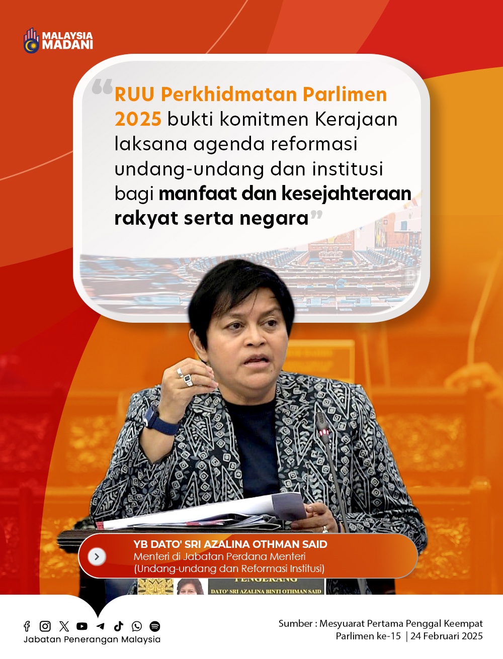 RUU PERKHIDMATAN PARLIMEN 2025 BUKTI KOMITMEN KERAJAAN LAKSANA AGENDA REFORMASI UNDANG-UNDANG DAN INSTITUSI BAGI MANFAAT DAN KESEJAHTERAAN RAKYAT SERTA NEGARA