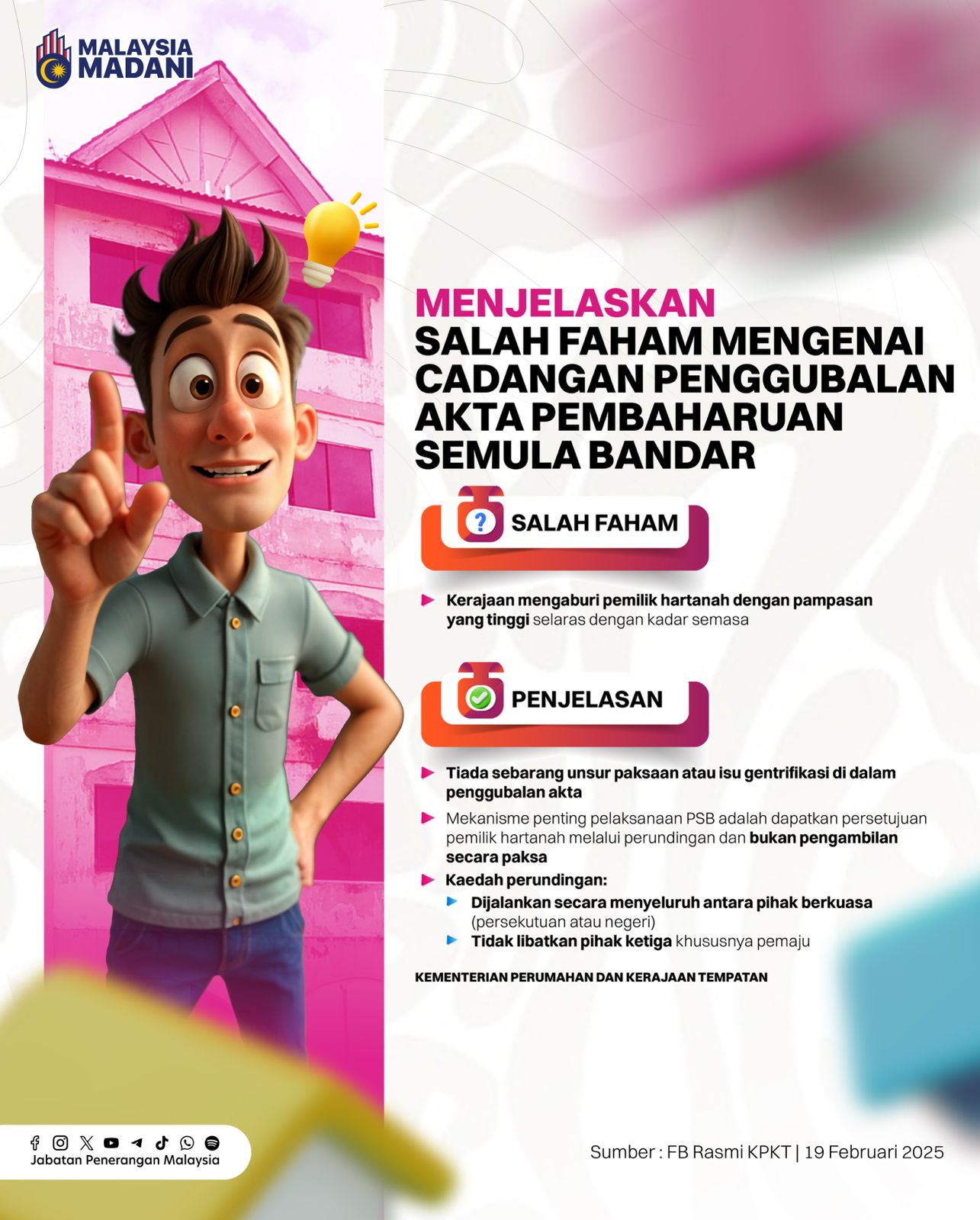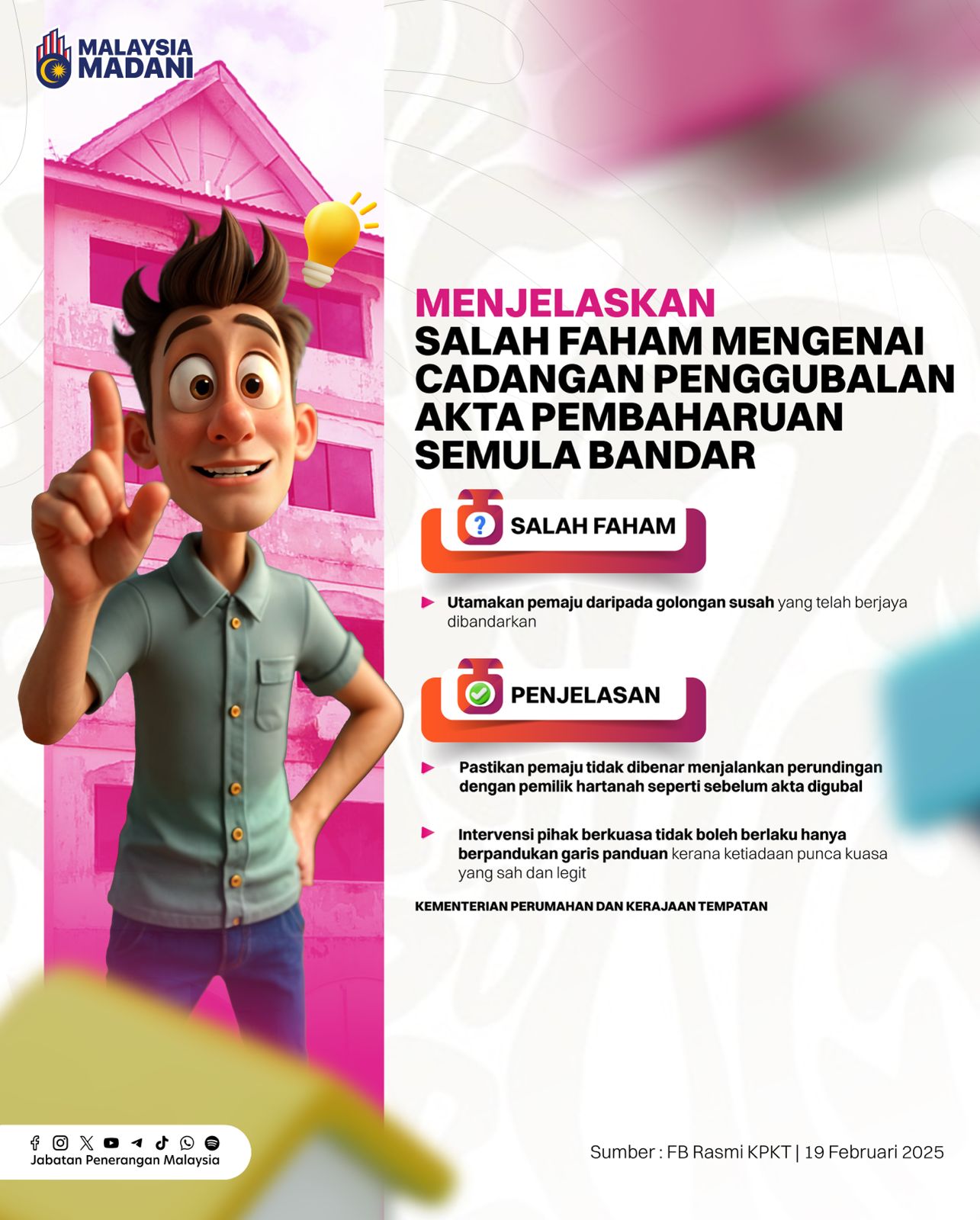MENJELASKAN SALAH FAHAM MENGENAI CADANGAN PENGGUBALAN AKTA PEMBAHARUAN SEMULA BANDAR