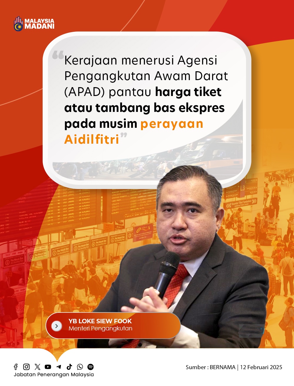 KERAJAAN MENERUSI AGENSI PENGANGKUTAN AWAM DARAT (APAD) PANTAU HARGA TIKET ATAU TAMBANG BAS EKSPRES PADA MUSIM PERAYAAN AIDILFITRI