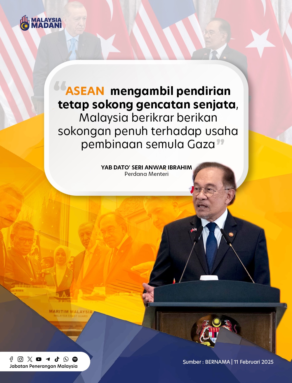 ASEAN MENGAMBIL PENDIRIAN TETAP SOKONG GENCATAN SENJATA, MALAYSIA BERIKRAR BERIKAN SOKONGAN PENUH TERHADAP USAHA PEMBINAAN SEMULA GAZA