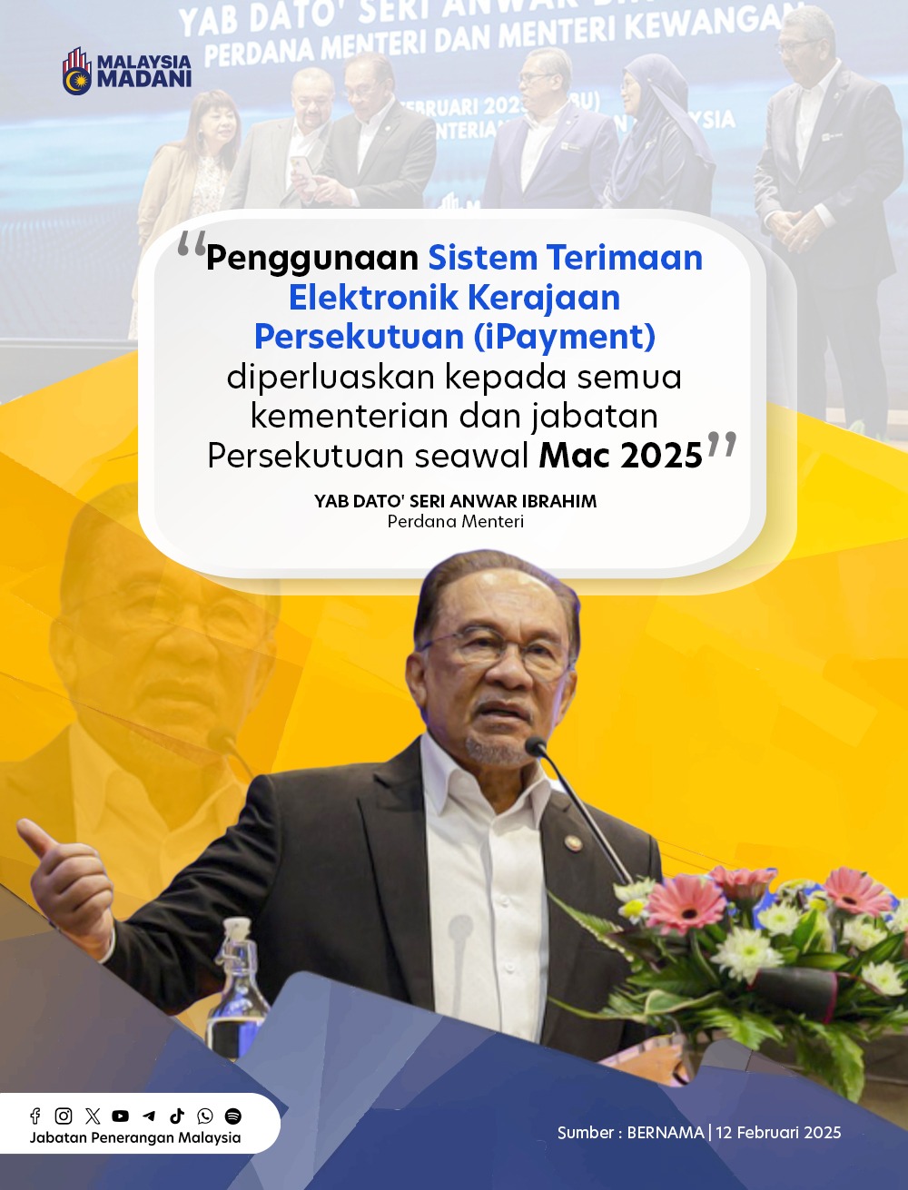 PENGUNAAN SISTEM TERIMAAN ELEKTRONIK KERAJAAN PERSEKUTUAN (IPAYMENT) DI PERLUASKAN KEPADA SEMUA KEMENTERIAN DAN JABATAN PERSEKUTAN SEAWAL MAC 2025