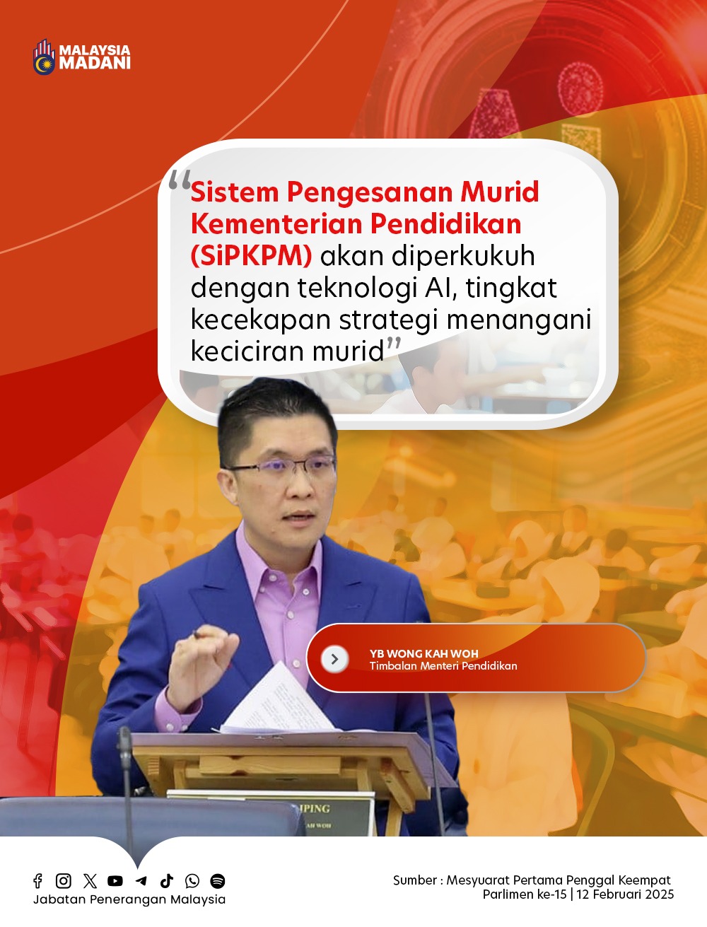 SISTEM PENGESAHAN MURID KEMENTERIAN PENDIDIKAN (SIPKPM) AKAN DIPERKUKUH DENGAN TEKNOLOGI AI, TINGKAT KECEKAPAN STRATEG MENANGANI KECICIRAN MURID