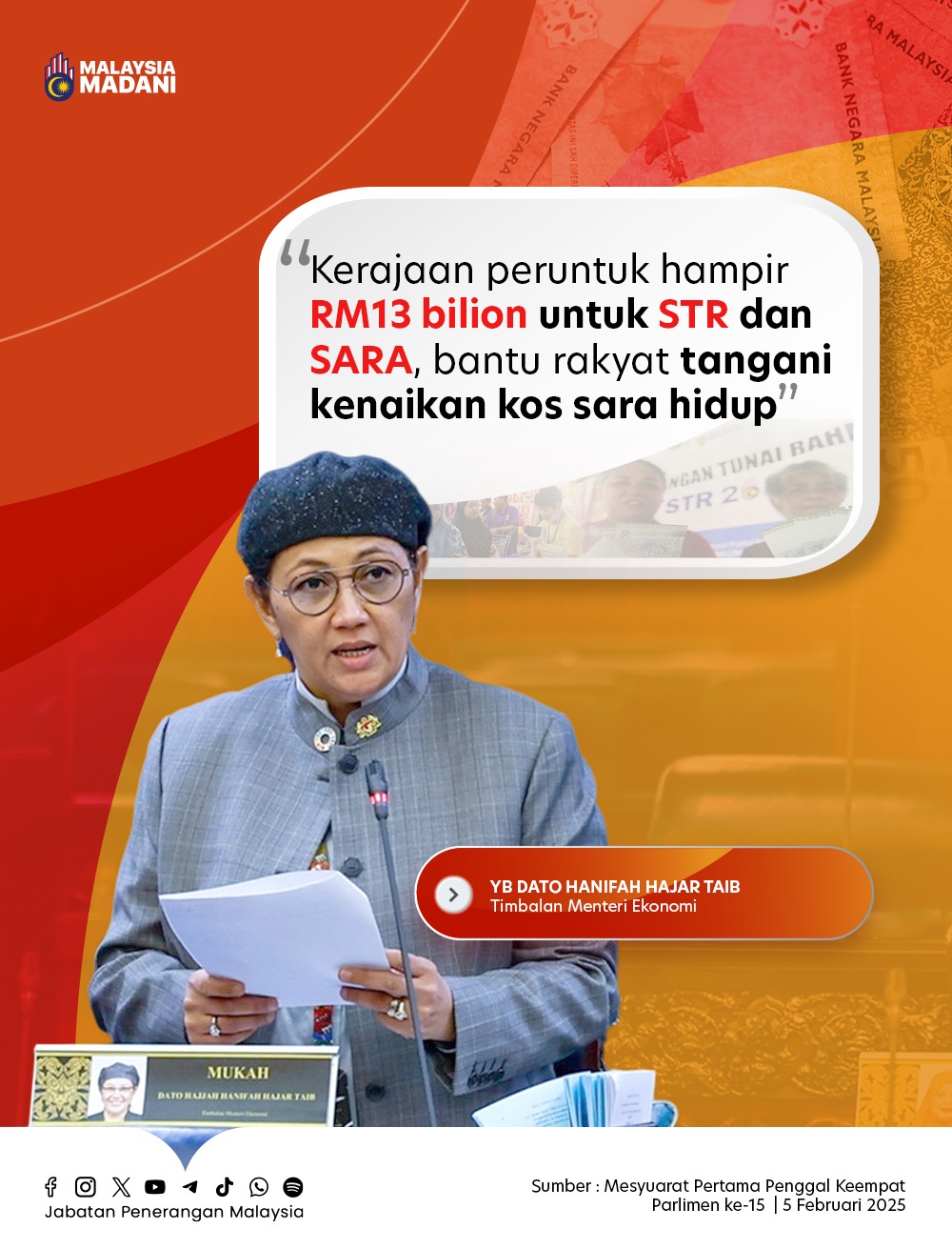 KERAJAAN PERUNTUK HAMPIR RM13 BILION UNTUK STR DAN SARA, BANTU RAKYAT TANGANI KENAIKAN KOS SARA HIDUP