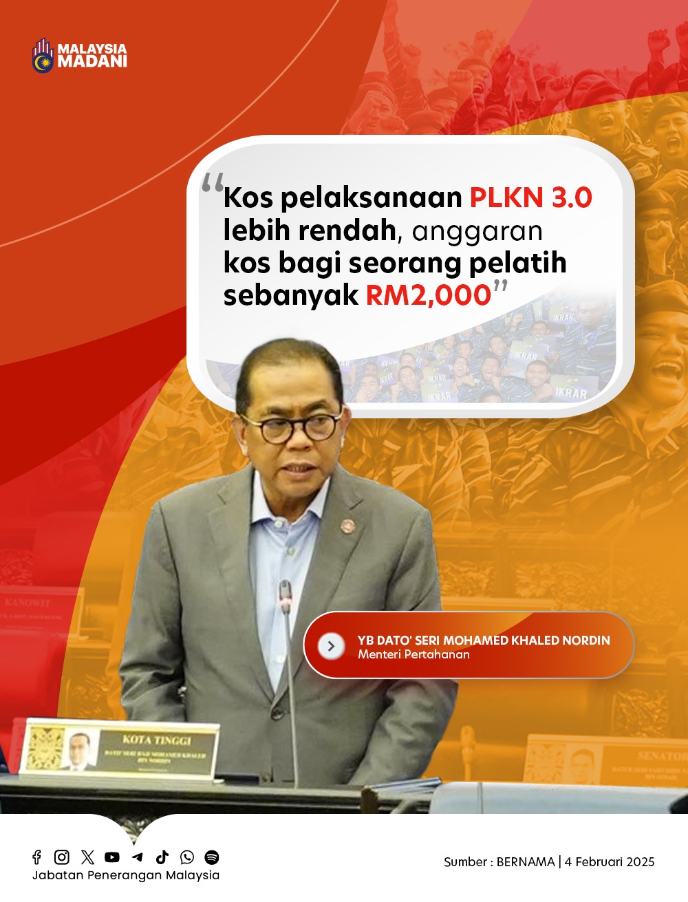 KOS PELAKSANAAN PLKN 3.0 LEBIH RENDAH, ANGGARAN KOS BAGI SEORANG PELATIH SEBANYAK RM2,000