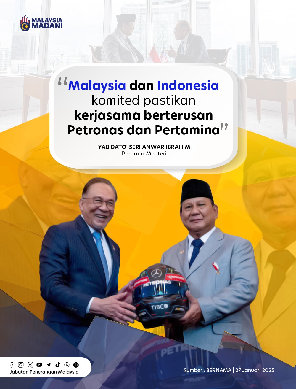 MALAYSIA DAN INDONESIA KOMITED PASTIKAN KERJASAMA BERTERUSAN PETRONAS DAN PERTAMINA