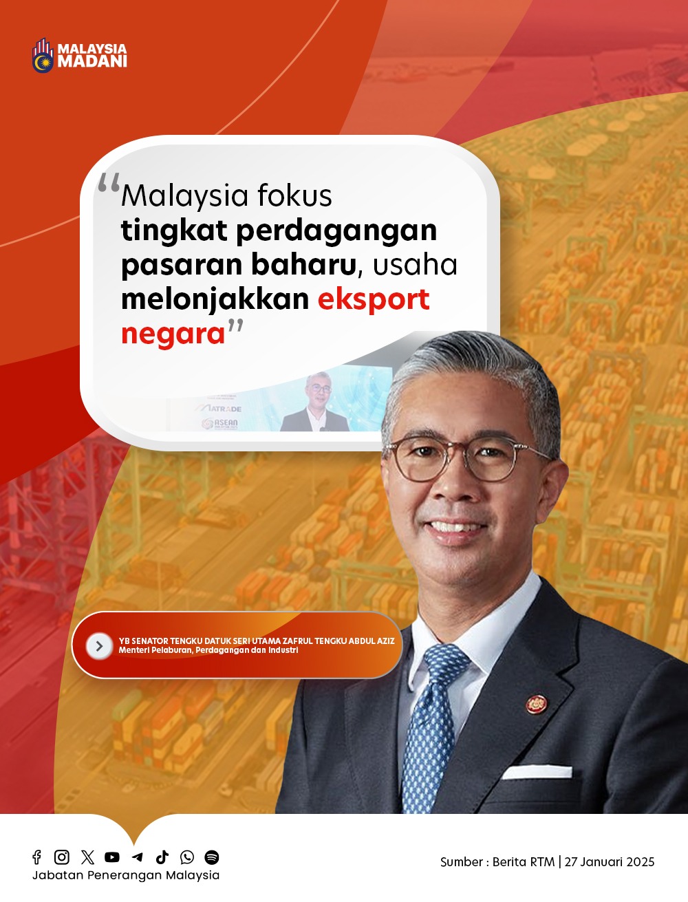MALAYSIA FOKUS TINGKAT PERDAGANGAN PASARAN BAHARU, USAHA MELONJAKKAN EKSPORT NEGARA