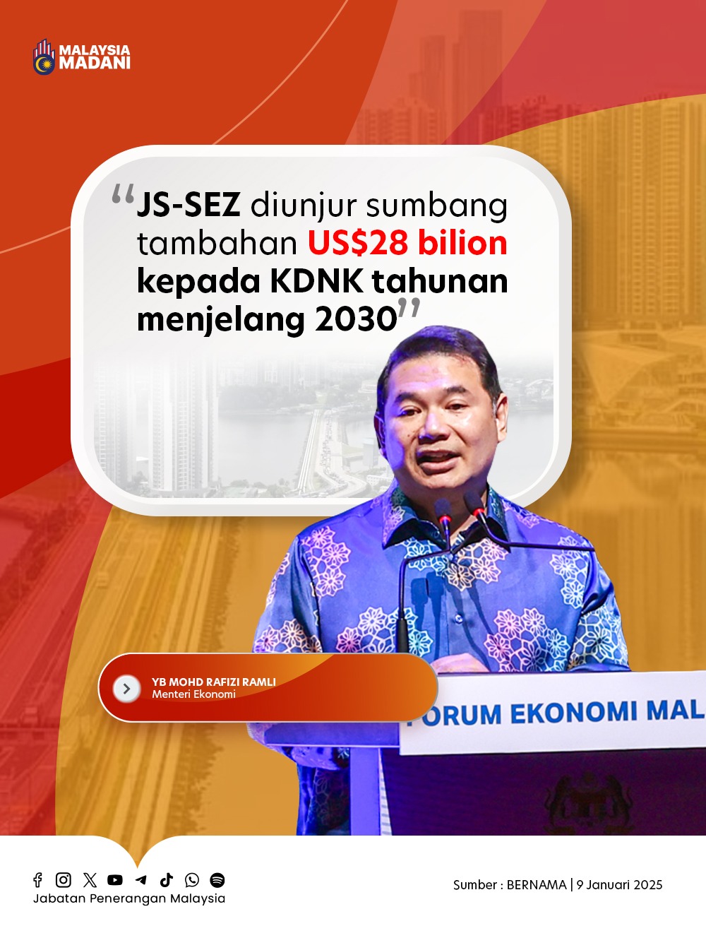 JS-SEZ IUNJUR SUMBANG TAMBAHAN US$28 BILION KEPADA KDNK TAHUNAN MENJELANG 2030