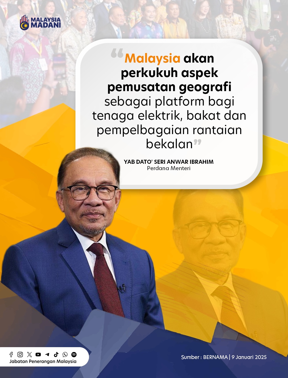 MALAYSIA AKAN PERKUKUH ASPEK PEMUSATAN GEOGRAFI SEBAGAI PLATFORM BAGI TENAGA ELEKTRIK, BAKAT DAN PEMPELBAGAIAN RANTAIAN BEKALAN