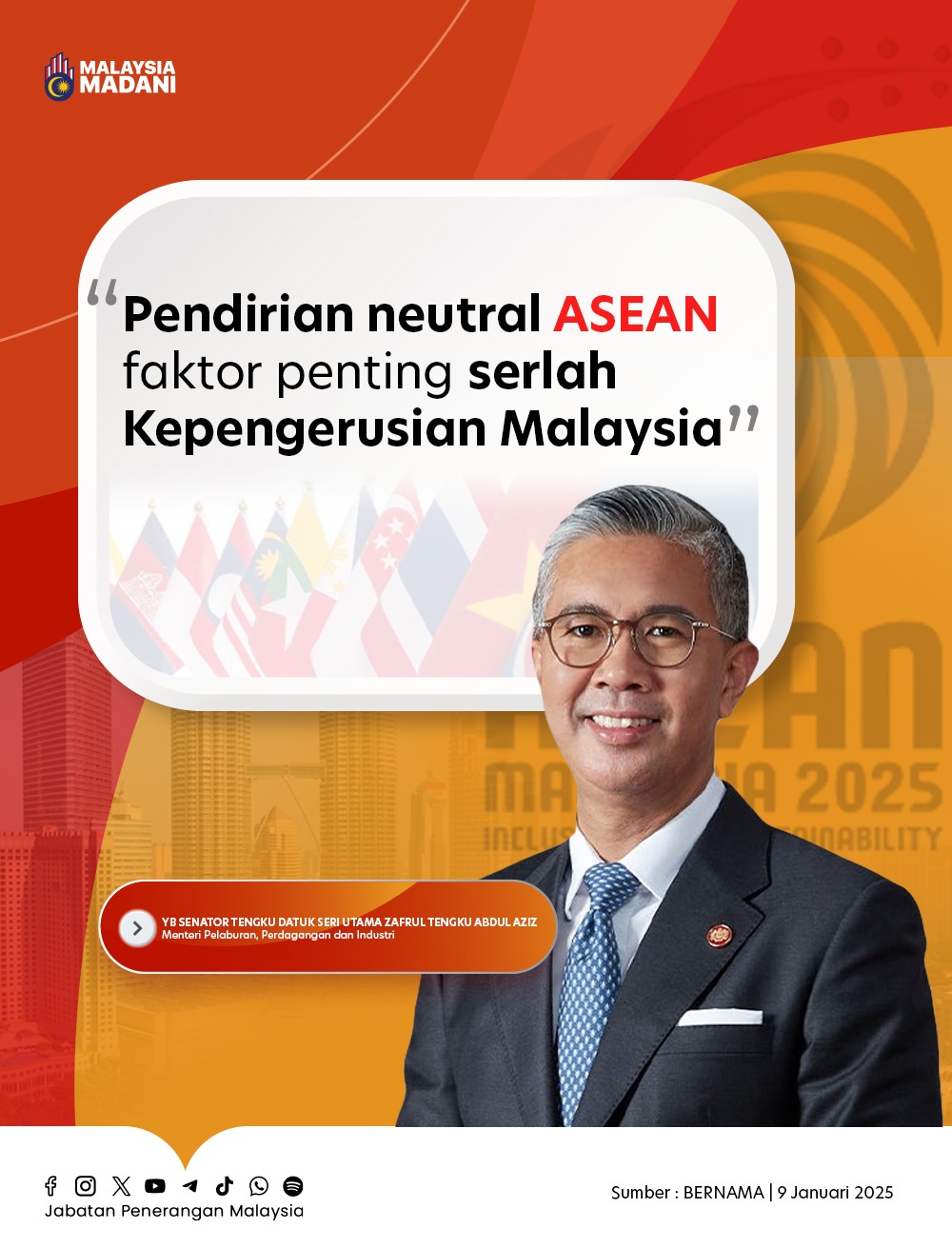 PENDIRIAN NEUTRAL ASEAN FAKTOR PENTING SERLAH KEPENGERUSIAN MALAYSIA
