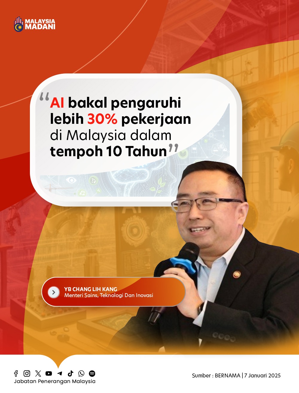 AI BAKAL PENGARUHI LEBIH 30% PEKERJAAN DI MALAYSIA DALAM TEMPOH 10 TAHUN