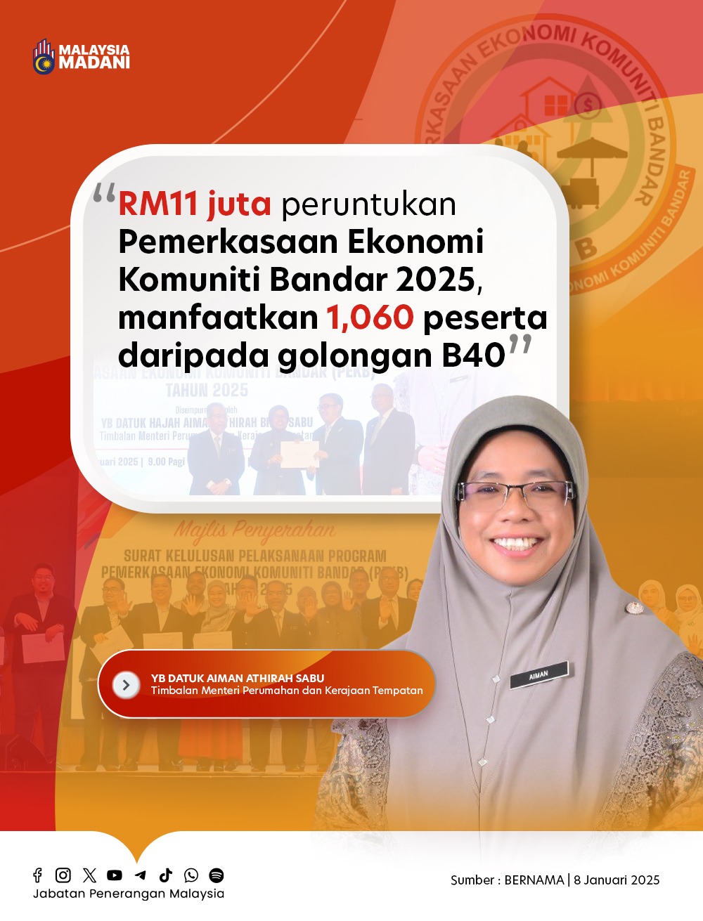RM11 JUTA PERUNTUKAN PEMERKASAAN EKONOMI KOMUNITI BANDAR 2025, MANFAATKAN 1060 PESERTA DARIPADA GOLONGAN B40