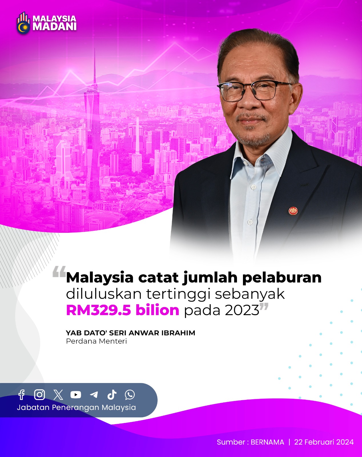 MALAYSIA CATAT JUMLAH PELABURAN DILULUSKAN TERTINGGI SEBANYAK RM329.5 BILION PADA 2023