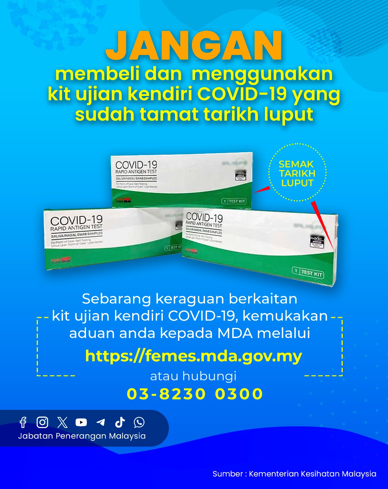 JANGAN MEMBELI DAN MENGGUNAKAN KIT UJIAN KENDIRI COVID-19 YANG SUDAH TAMAT TARIKH LUPUT