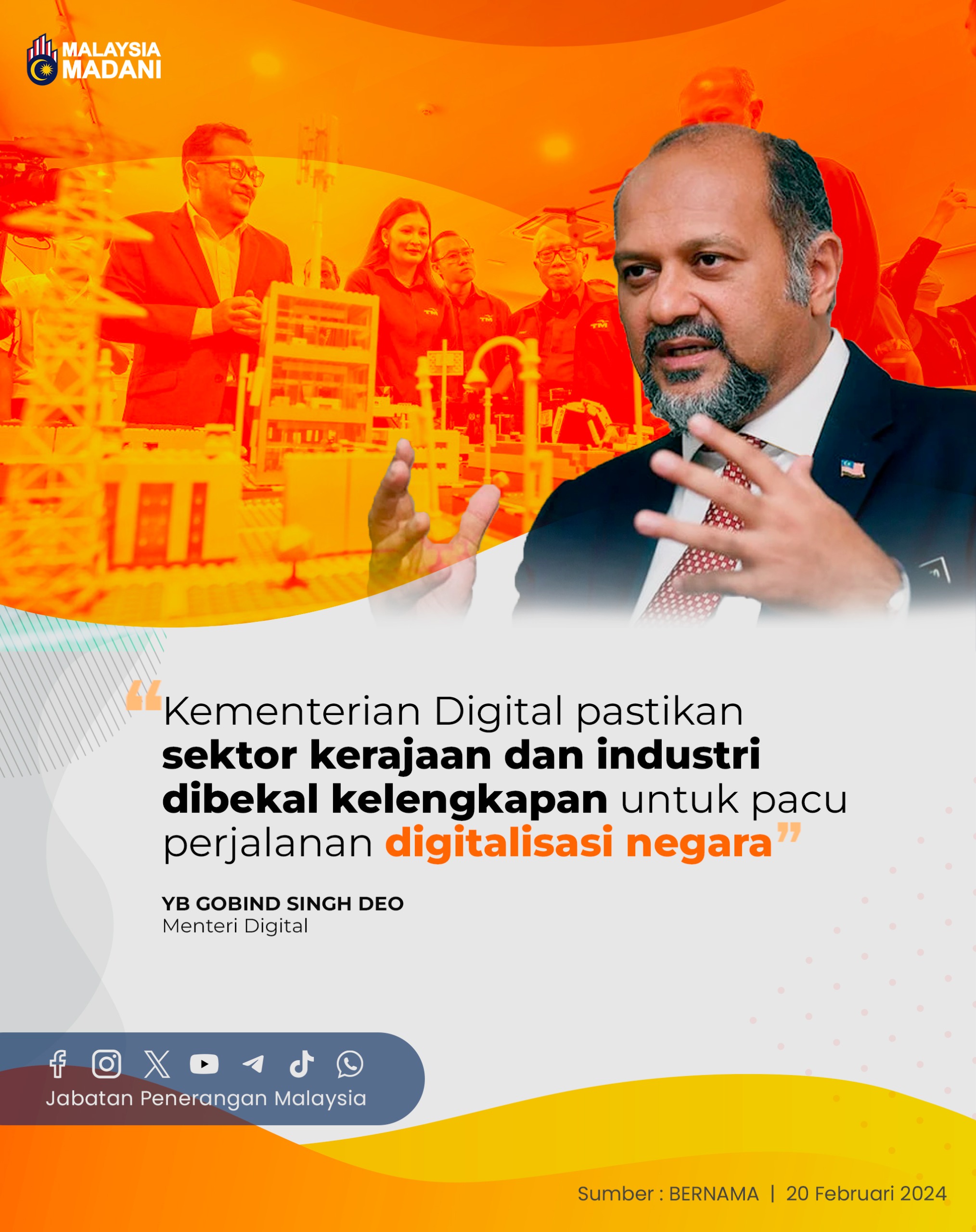 KEMENTERIAN DIGITAL PASTIKAN SEKTOR KERAJAAN DAN INDUSTRI DIBEKAL KELENGKAPAN UNTUK PACU PERJALANAN DIGITALISASI NEGARA