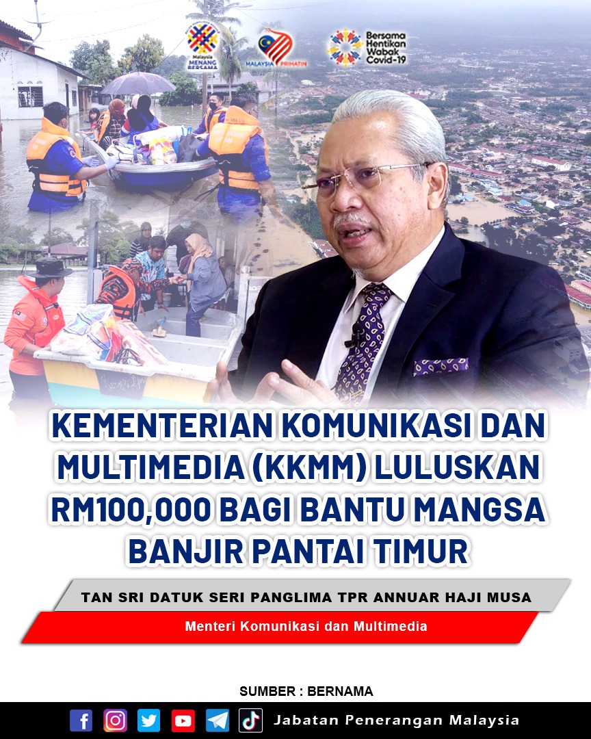 KEMENTERIAN KOMUNIKASI DAN MULTIMEDIA (KKMM) LULUSKAN RM100,000 BAGI BANTU MANGSA BANJIR PANTAI TIMUR