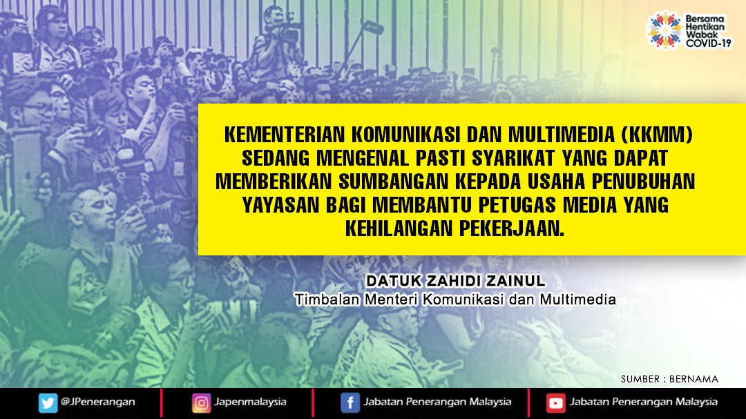 KEMENTERIAN KOMUNIKASI DAN MULTIMEDIA KKMM SEDANG MENGENAL PASTI SYARIKAT YANG DAPAT MEMBERIKAN SUMBANGAN KEPADA USAHA PENUBUHAN YAYASAN BAGI MEMBANTU PETUGAS MEDIA YANG KEHILANGAN PEKERJAAN
